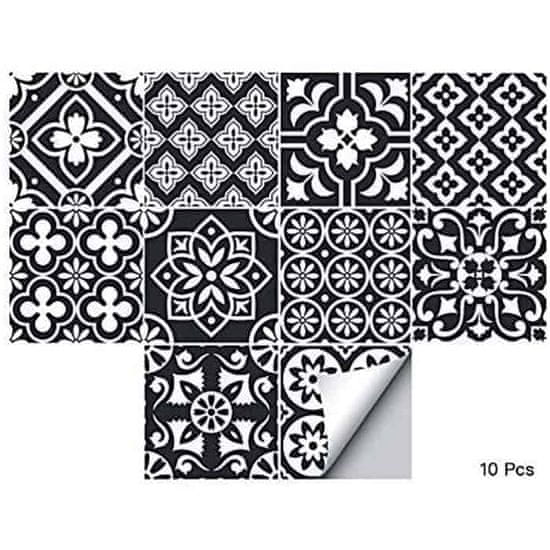 Netscroll Samoljepljive zidne naljepnice u imitaciji pločica, vodootporne, crno-bijeli cvjetni uzorak, 10 kom, 15x15 cm, za kuhinju i kupaonicu, TileDecor
