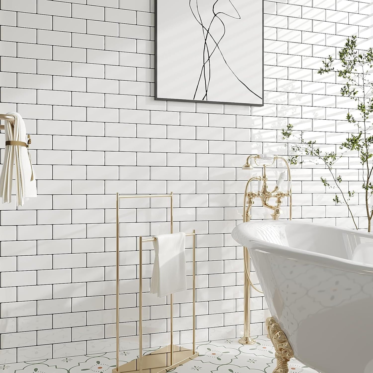 Nikcorp Naljepnice za zidne pločice bijele, samoljepljive, 3D efekt sjaja, vodootporne, 30,5 x 30,5 cm, 24 komada (2,23 m2)