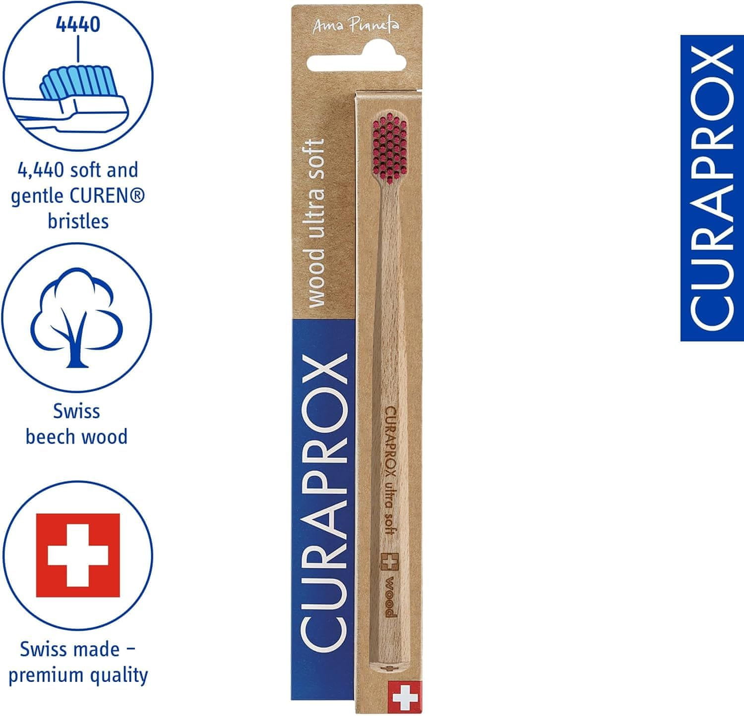 Nikcorp Četkica za zube Curaprox CS Wood, ultra mekana, 4440 vlakana, biorazgradiva drvena drška od bukve, crvena (Bordeaux Red)