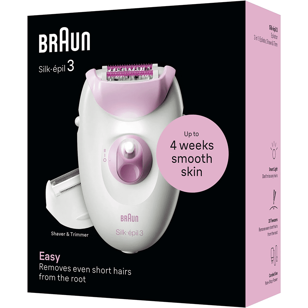 Ženski epilator Braun Silk-épil 3 3–031 dizajniran je za nježno i učinkovito uklanjanje dlačica izravno iz korijena, zahvaljujući čemu možete uživati u glatkoj koži i do nekoliko tjedana. Tehnologija s 20 pinceta hvata čak i kratke dlačice koje bi klasično brijanje propustilo, a sustav SoftLift Tips ih podiže za još bolji rezultat epilacije. Epilator nudi 2 brzine rada, tako da možete birati između maksimalne učinkovitosti ili nježnijeg načina rada. Ugrađeni masažni valjak pomaže ublažiti neugodne osjećaje tijekom epilacije. Zahvaljujući kompaktnom obliku i jednostavnom rukovanju, idealan je izbor za početnike i svakodnevnu njegu glatke kože.