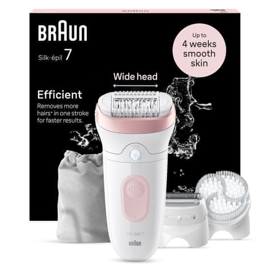 Braun Silk-épil 7 epilator pruža do mjesec dana glatke kože, učinkovito iu bilo koje vrijeme. Prikladan je za mokru i suhu upotrebu i ima široku glavu koja pokriva velike površine kako bi skinuo više dlačica (poput Braun Silk-épil 5) sa svakim potezom. Ovaj Braunov epilator bez kabela ima MicroGrip tehnologiju koja može uhvatiti dlačice ne duže od 0,5 mm. Uživajte u glatkoj koži kao nakon posjeta salonu, ali uz dodatnu udobnost zahvaljujući nastavku valjka za masažu koji može pomoći u smanjenju osjećaja boli. Recite zbogom neugodnom čekanju da dlačice ponovno izrastu, što je potrebno za druge metode uklanjanja dlačica poput depilacije. Epilator je dizajniran za praktičnost i eliminira potrebu za čišćenjem nereda ili posjetom salonu. Savjet: Osjećaj boli bit će manji ako epilator koristite u kadi ili pod tušem s toplom vodom. Dizajnirani da traju godinama: epilatori su proizvedeni u Njemačkoj.