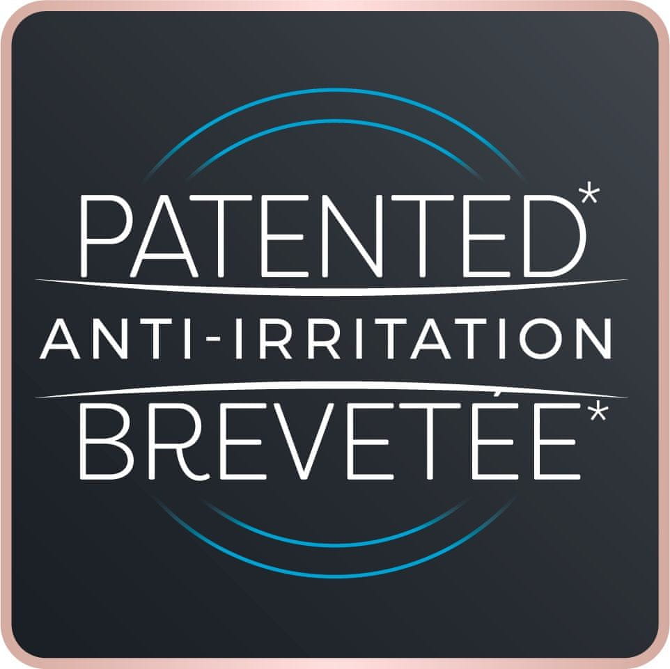 Epilator Rowenta dolazi s patentiranom tehnologijom protiv nadraživanja koja eliminira crvene mrlje od brijanja, urastanje dlačica ili upale kože. Materijal za glavu bolje klizi po koži i uzrokuje manje trenja.