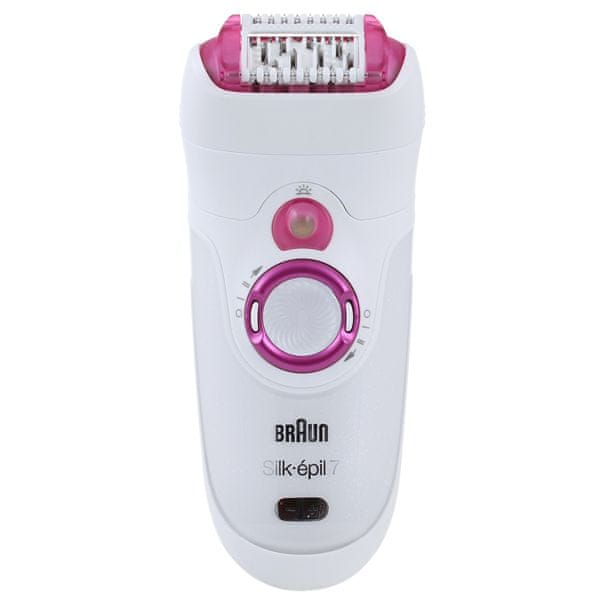 Epilator Braun Silk-épil 7 za glatku kožu do 4 tjedna. Za korištenje pod tušem ili na suho. U pakiranju se nalaze 2 glave i 2 nastavka s torbicom za pohranu te mini trimerom za tijelo.