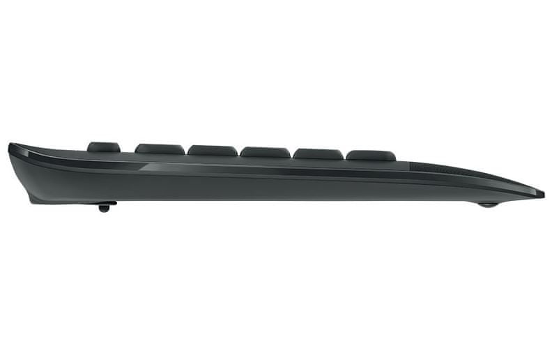 Tipkovnica ima tipke dizajnirane za preciznost i smanjenu glasnoću tipka te naslon za dlanove za veću udobnost. Na donjoj strani ima nogice za podešavanje visine ili nagiba (0° / 4° / 8°). Dodane „brze tipke" omogućuju neposredan dostup do nadzora multimedijskog sadržaja, kalkulatora i provjere stanja baterije. Tipkovnica je otporna na prolijevanje do 60 ml tekućine i ima tipke otporne na ogrebotine.