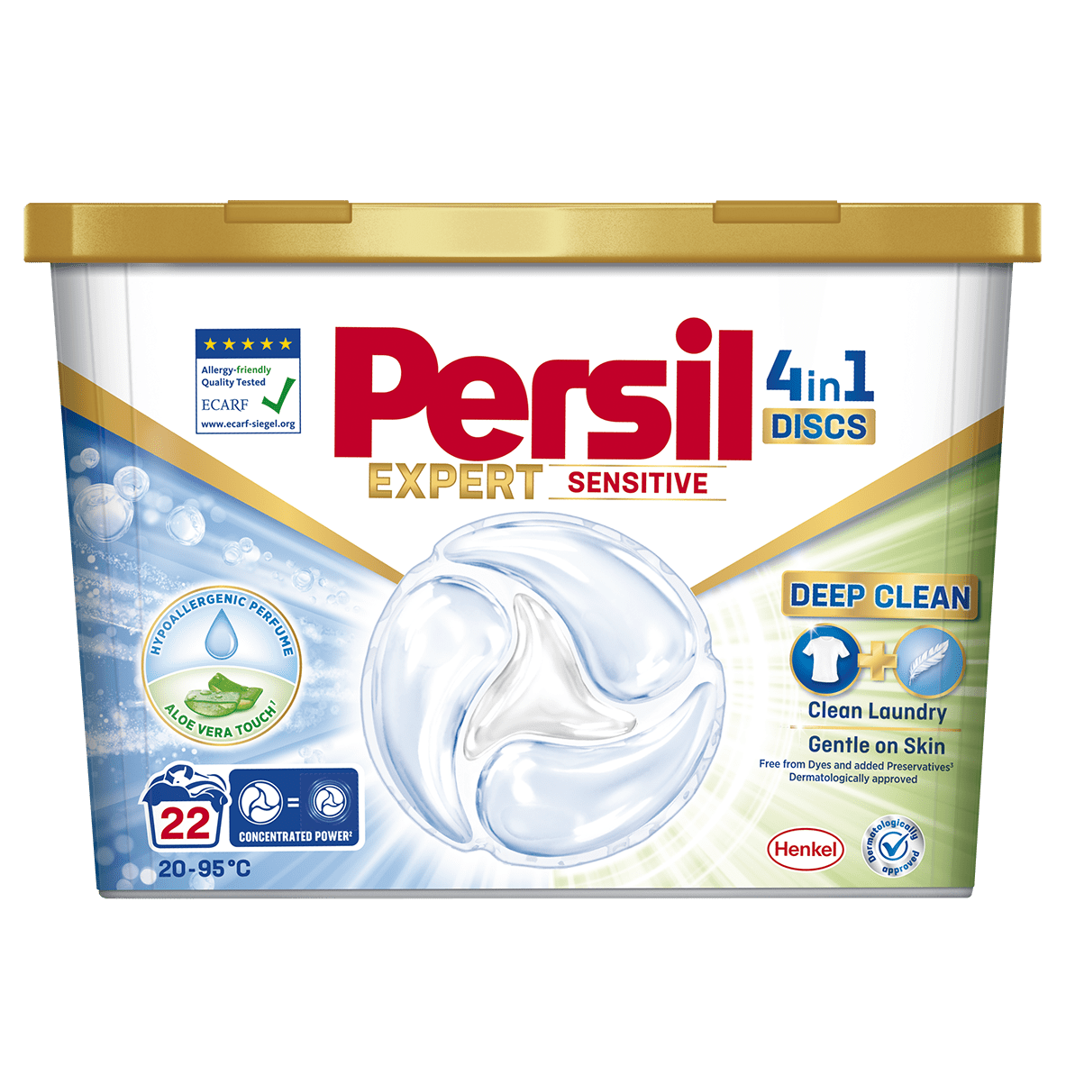 Persil Expert kapsule za pranje Sensitive, 22 pranja, pogodne su za osobe s osjetljivom kožom te za pranje dječje odjeće i odjeće osoba s alergijama.
