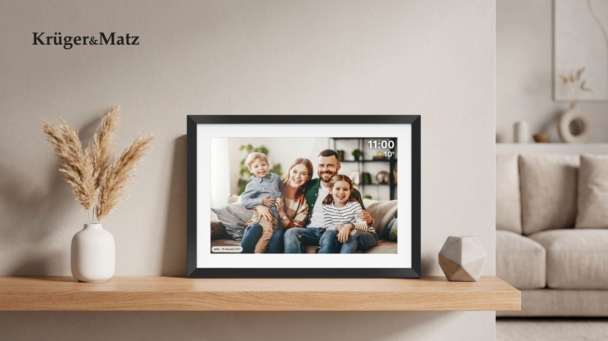 Kruger&Matz okvir za fotografije, zahvaljujući namjenskoj FRAMEO aplikaciji, pruža novu kvalitetu dijeljenja uspomena. Sada možete jednostavno i brzo poslati svoje omiljene fotografije i videozapise izravno sa svog pametnog telefona u okvir. Ponovno stvorite svaku snimku životnih događaja sa svojim voljenima i uživajte u čaroliji uspomena.