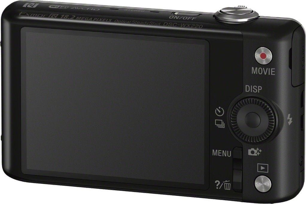 Sony DSC-WX220 automatski prilagođava postavke fotoaparata s obzirom na uvjete snimanja. Automatsko fokusiranje uz praćenje automatski prilagođava veličinu kadra na temelju svojstava subjekta radi postizanja jasnih i definiranih rezultata. Snimljene fotografije i videozapise možete pogledati na ugrađenom 6,7 cm (2,7") LCD-zaslonu.