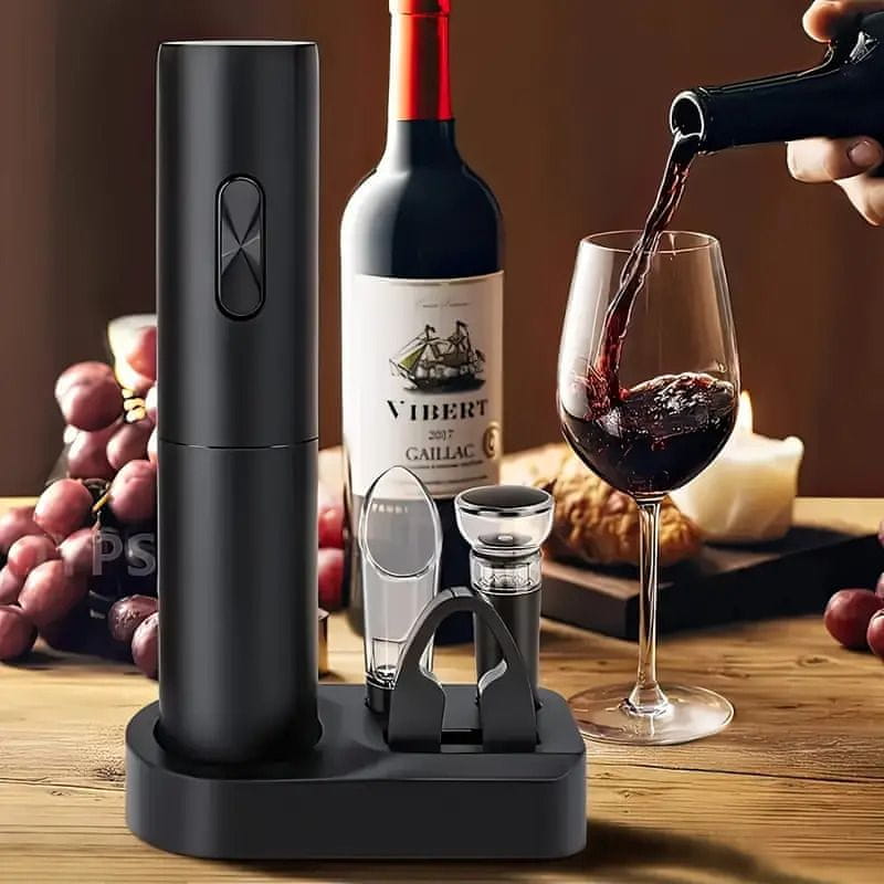HOME & MARKER® Komplet za vino: automatski električni otvarač, rezač folije, nalijevač sa zračnikom, vakuumski čep i podložak | VINOCORK