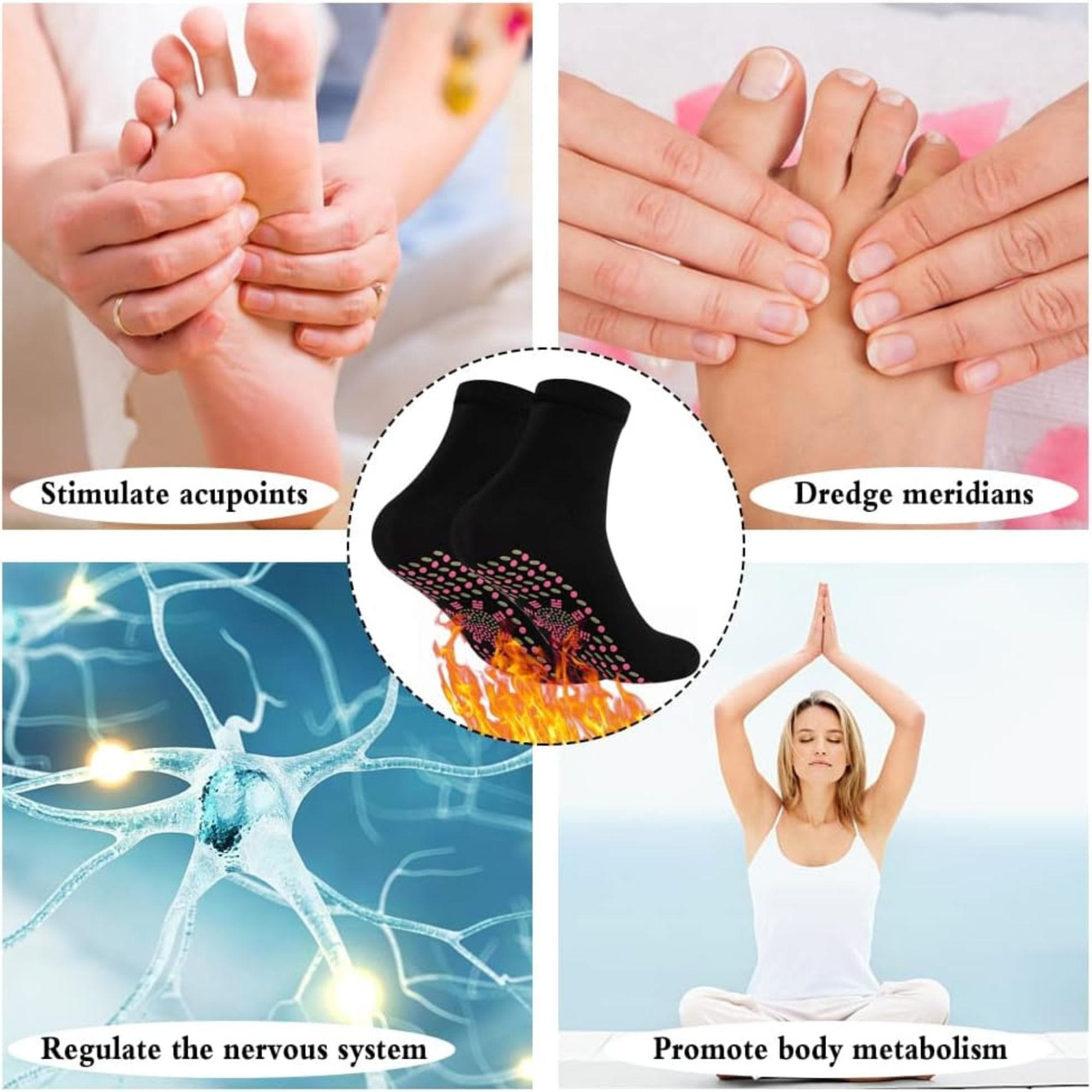 Doživite umirujuću toplinu s inovativnim samozagrijavajućim dizajnom koji stimulira akupresurne točke na vašim stopalima, potičući opuštanje i udobnost.