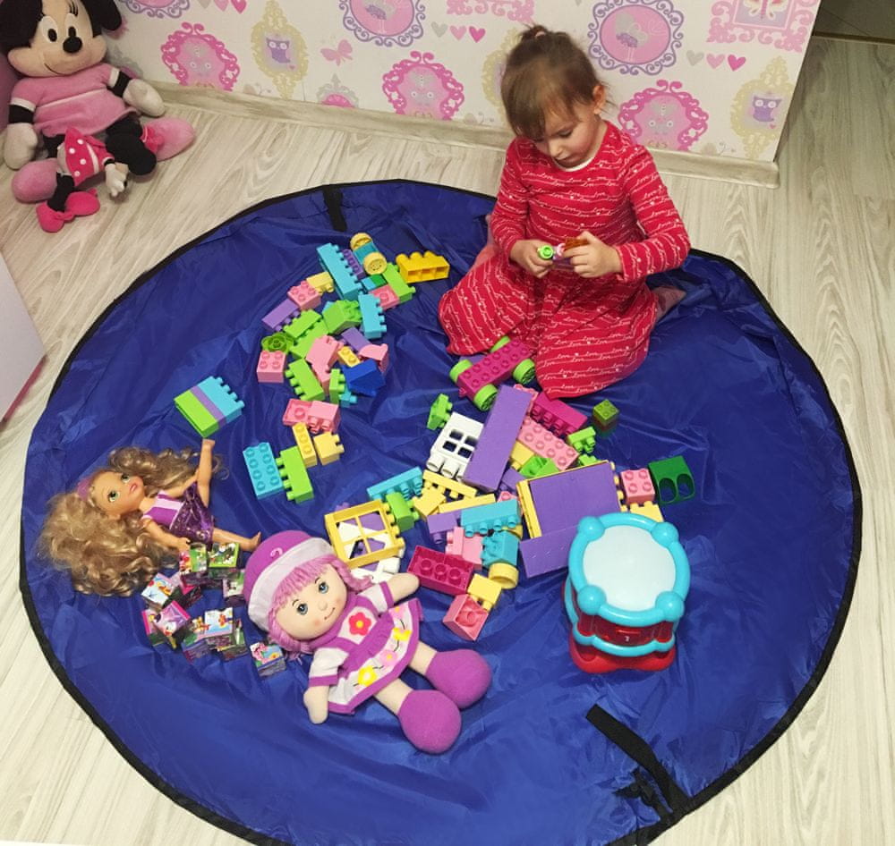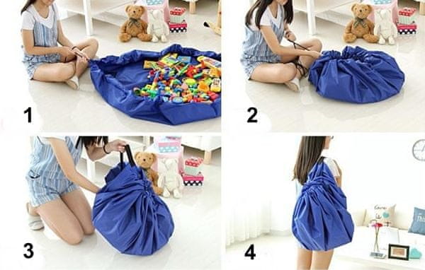Organizator ima povišeni rub zahvaljujući kojem se kocke ili druge igračke ne rasipaju po prostirci. Jednim potezom možete otrgnuti konopac podloge pune igračaka i skupiti sve u praktičnu torbu. Torba ima ručku za nošenje/vješanje. Savršeno za izlete – lako možete prenijeti igračke i dijete će se imati gdje igrati.