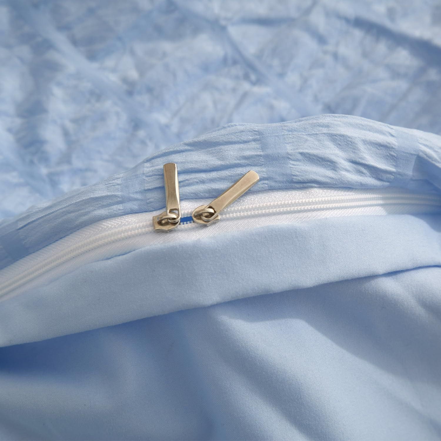 Nikcorp Posteljina 200x200 cm Seersucker svjetloplava, dvostrana navlaka od mikrovlakana s patentnim zatvaračem, 3-dijelni set