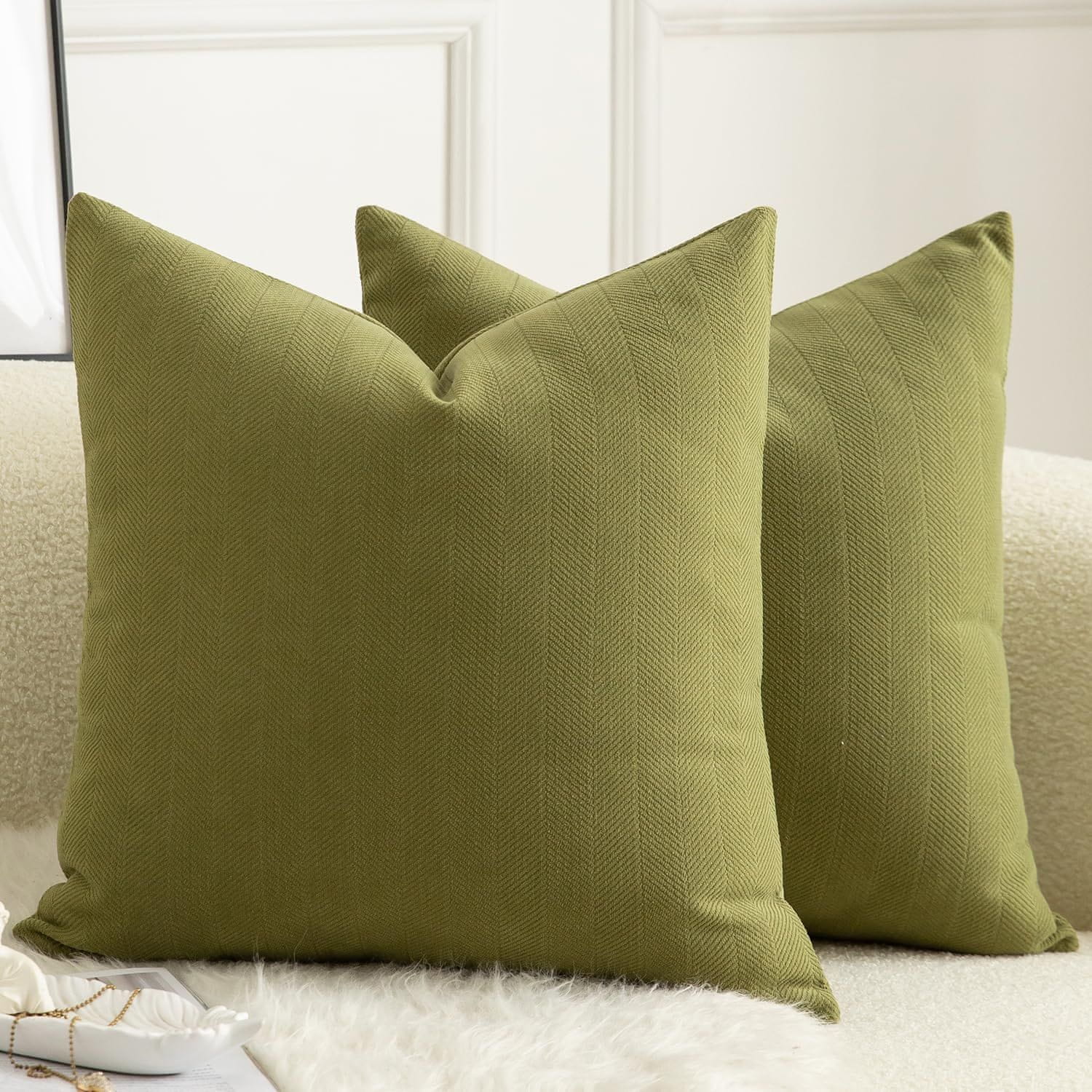 Nikcorp Set od 2 dekorativne jastučnice 60x60 cm od mekane šenil tkanine, maslinasto zelena boja, za dnevni boravak i spavaću sobu