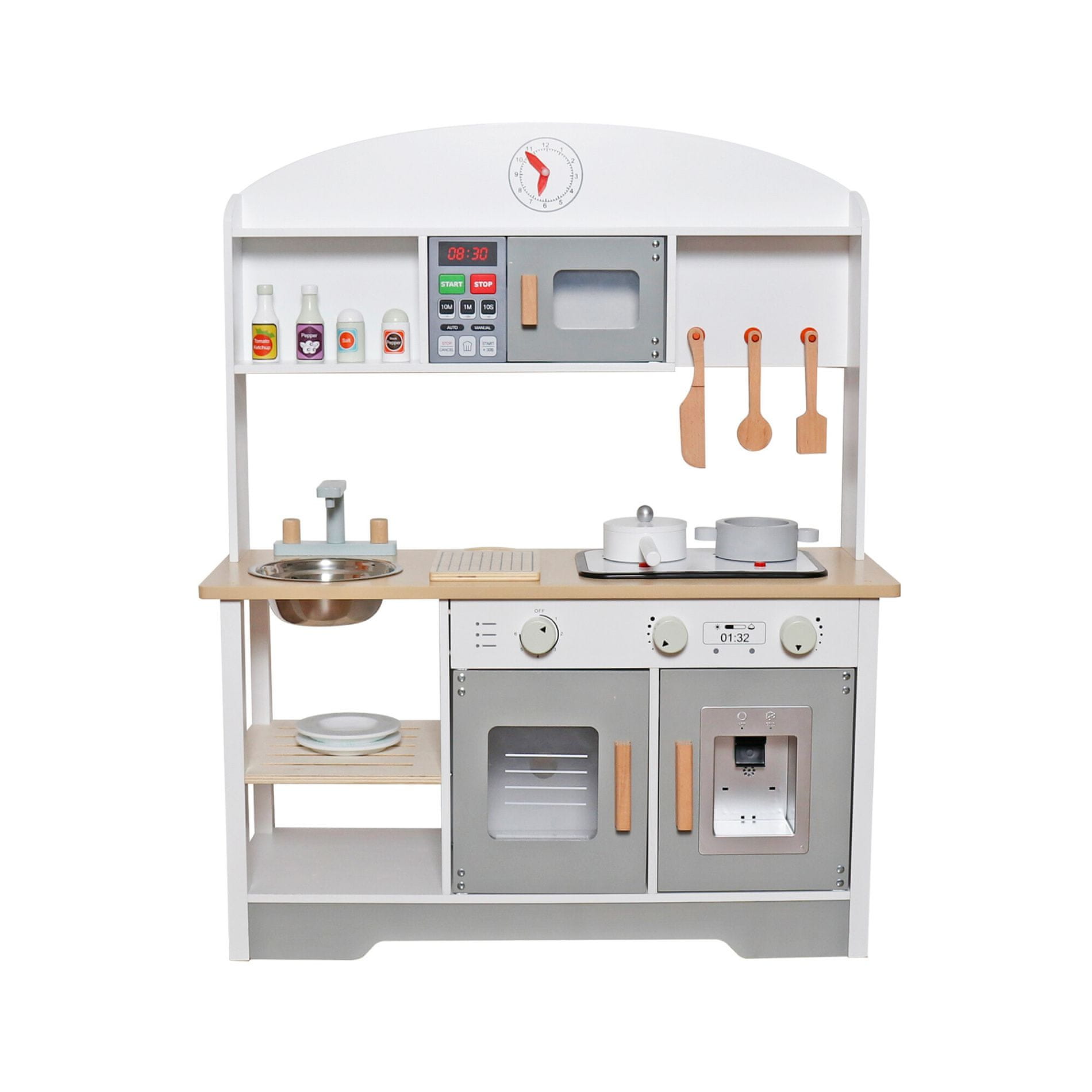 Tento model dětské kuchyňky je vybaven celou řadou funkčních prvků a doplňků. Kuchyňka je dostatečně velká na to, aby si s ní mohlo hrát více dětí najednou.