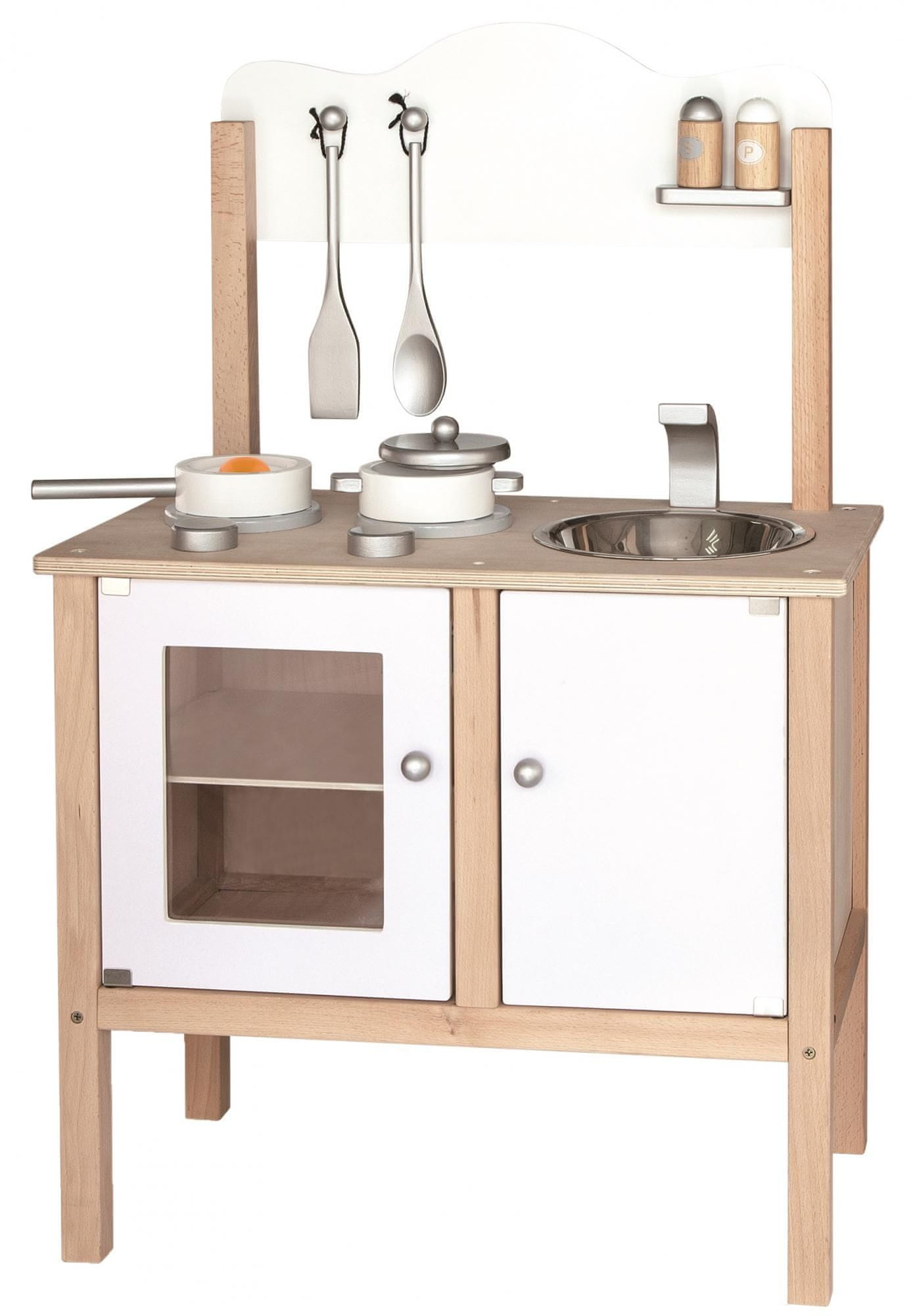 Ova prekrasna drvena kuhinja sa štednjakom, ormarićem i sudoperom. Kuhinu ne smije propustiti niti jedan mali kuhar, jer je izvrstan dodatak bilo kojoj dječjoj sobi. Cijeli opis