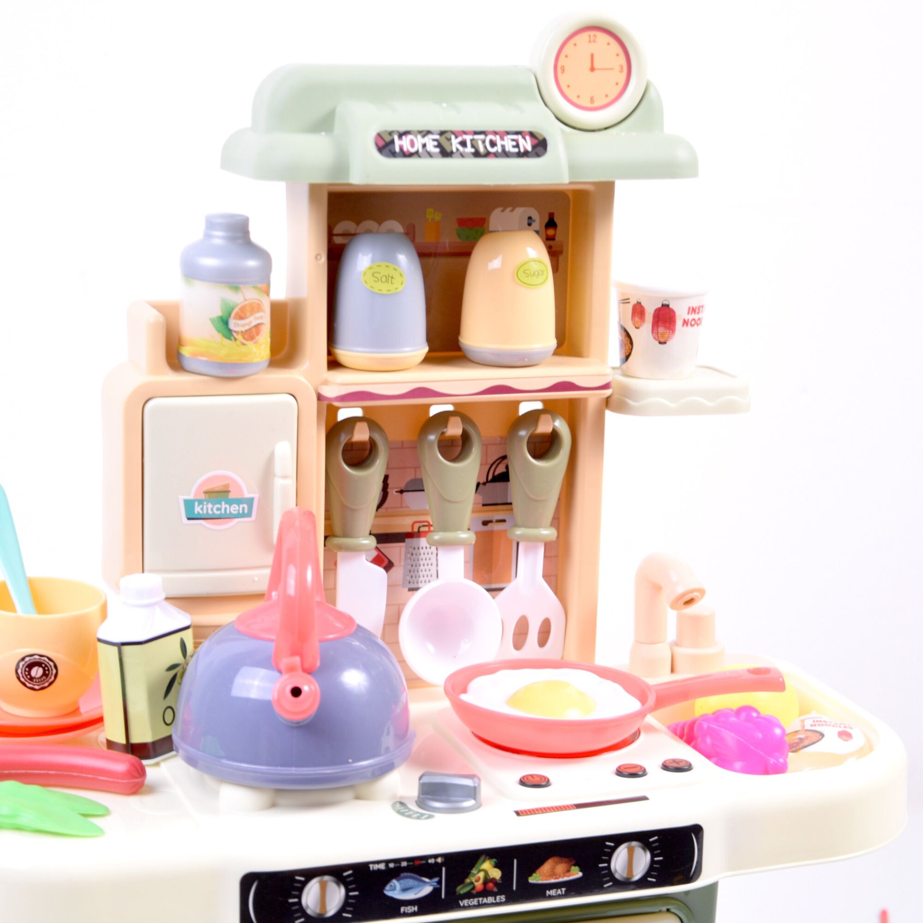 Kuhinjska jedinica opremljena je zvučnim i svjetlosnim efektima koji oponašaju pravi štednjak. Plamenik štednjaka ima funkciju ispuštanja hladne pare, što kuhanju daje još veću autentičnost. Gumbi na štednjaku se okreću i klikaju, što djeci omogućuje da se osjećaju kao pravi kuhari.