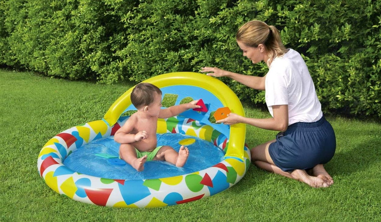 Dječji bazen na napuhavanje umetanjem oblika koji na zabavan način potiče učenje i maštu. Dio dječjeg bazena je jastučić koji se može napuniti vodom i tako djetetu nudi zabavno mjesto za igru. Bazen se može koristiti na otvorenom i u zatvorenom.