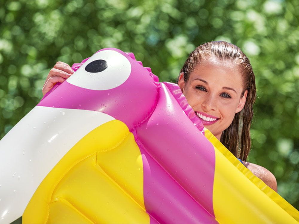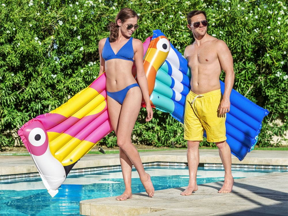 Nafukivajući madrac Bestway® Tropical Bird najnoviji je dodatak u liniji nafukivajućih madraca Bestway® i idealan je za osvježavajuće kupanje u vodi tijekom vrućih ljetnih dana.Madrac dimenzija 183 cm x 76 cm izrađen je od mekog, ali izdržljivog vinila s ljetnom grafikom u boji. Madrac se sastoji od dvije zračne komore. Zahvaljujući napuhavajućem naslonu za glavu omogućuje vam udoban odmor i relaksaciju. Madrac se lako napuhuje, ispuhuje i sprema.