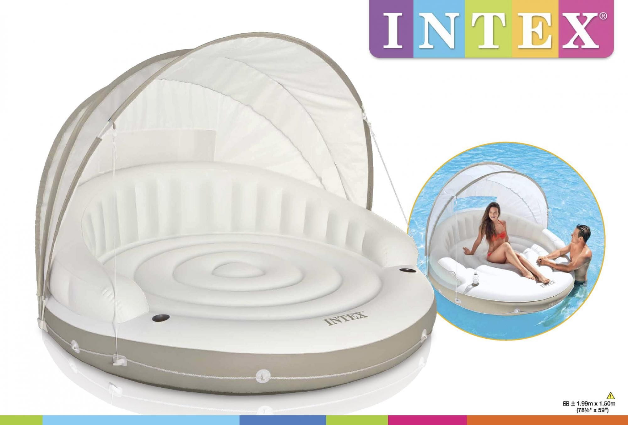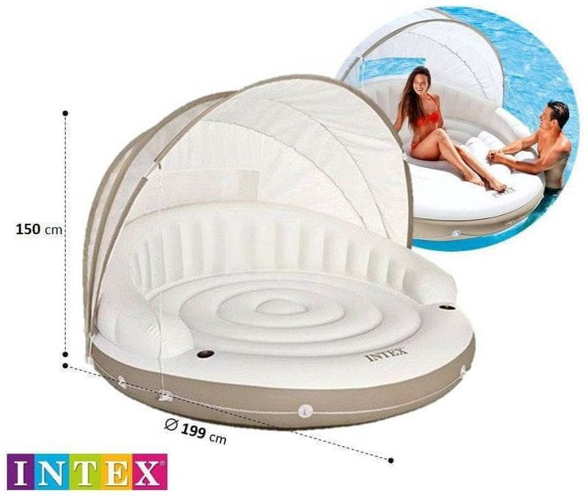 Intex madrac na napuhavanje s udobnim naslonjačem i krovom, idealan je za plivanje i igru u bazenu tijekom vrućih, ljetnih dana.