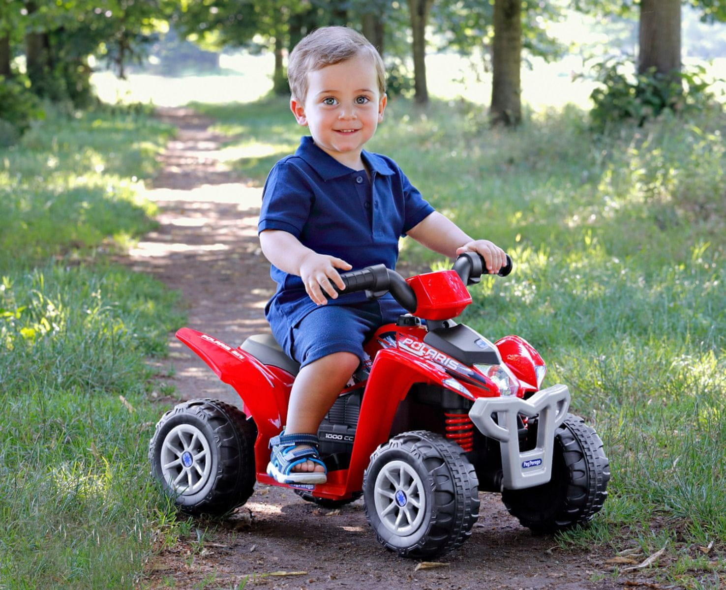 Polaris Mini je siguran i zabavan električni quad za djecu od 1 godine, savršen za njihove prve avanture na četiri kotača.