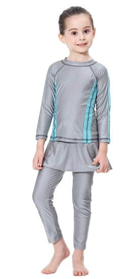 Predstavite svojoj kćeri udobnost i stil s našim kupaćim kostimom za djevojčice. Ovaj kupaći kostim izrađen je od mješavine 80% poliestera i 20% spandexa, što osigurava brzo sušenje, idealno za plivanje i kupanje. Njegova svestranost čini ga prikladnim za razne vodene aktivnosti, uključujući plivanje, surfanje, ronjenje ili snorkeling. Dizajniran je s naglaskom na praktičnost i udobnost, što ga čini odličnim izborom za satove plivanja, zabave na bazenu ili odmor na plaži. Kupaći kostim ima skroman dizajn s dugim ili poludugim rukavima i okruglim dekolteom, pružajući odgovarajuću pokrivenost. Dodatni šarm daje mu falbana na dnu suknje. Uz kostim dolazi i plivačka marama koja pomaže u održavanju kose suhom. Tkanina je elastična i prozračna, što osigurava udobnost tijekom nošenja i intenzivnih aktivnosti. Također je prijatna za kožu, minimizirajući rizik od iritacija. Stil navlačenja olakšava oblačenje i skidanje kostima, što je praktično za djecu. Ovaj kupaći kostim može biti i promišljen poklon za vaše dijete, posebno za rođendane, kombinirajući funkcionalnost i privlačan izgled.