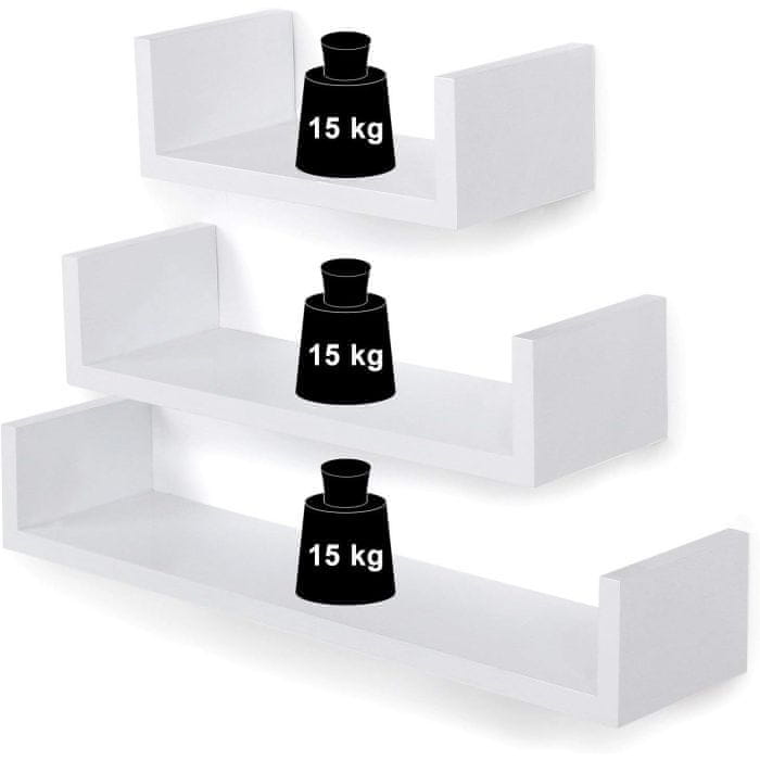 Songmics Komplet 3 plavajuće police 40 -35 -30cm