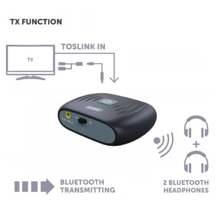 Kao odašiljač: prenosi visokokvalitetni stereo zvuk s pametnih televizora, igraćih konzola, DVD-ova itd. na Bluetooth uređaje kao što su slušalice i zvučnici.