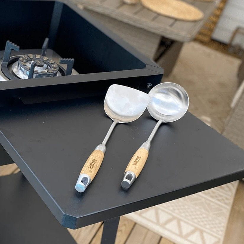 Lopatica za vrući wok kombinira izdržljivi nehrđajući čelik s bambusovom ručkom koja ostaje hladna za udoban i prirodan hvat prilikom kuhanja u woku. Njezin duboki, zaobljeni oblik olakšava posluživanje juha, umaka, curryja i brzih obroka, a istovremeno podnosi visoke temperature u unutarnjim kuhinjama i na otvorenom. Praktična rupa za vješanje olakšava pohranu, a pranje ruku čuva trajnost i ljepotu bambusove ručke.