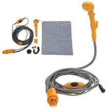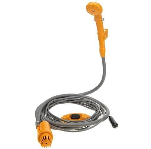 Set dodatno uključuje dvostruku kuku, koja vam omogućuje pričvršćivanje slušalice npr. na stablo, mrežu itd. ili pričvrstiti ručnik ili toaletnu torbicu.Turistički tuš je više od samog pranja tijela. Ljudi koji idu kampirati i ne samo to, cijenit će njegovu funkcionalnost. Dovoljno ga je priključiti na auto utičnicu i omogućit će vam udobno tuširanje – mnogi kampovi nude tuševe gdje je protok vode tako nizak da obična kupka traje nekoliko minuta, zbog čega su redovi ogromni! S našim tušem možete podesiti jačinu mlaza i osjećati se kao u svojoj kućnoj kupaonici. Pripravak omogućuje i pranje posuđa, ispiranje automobila, pranje napuhanih igračaka i mnoge druge aktivnosti.