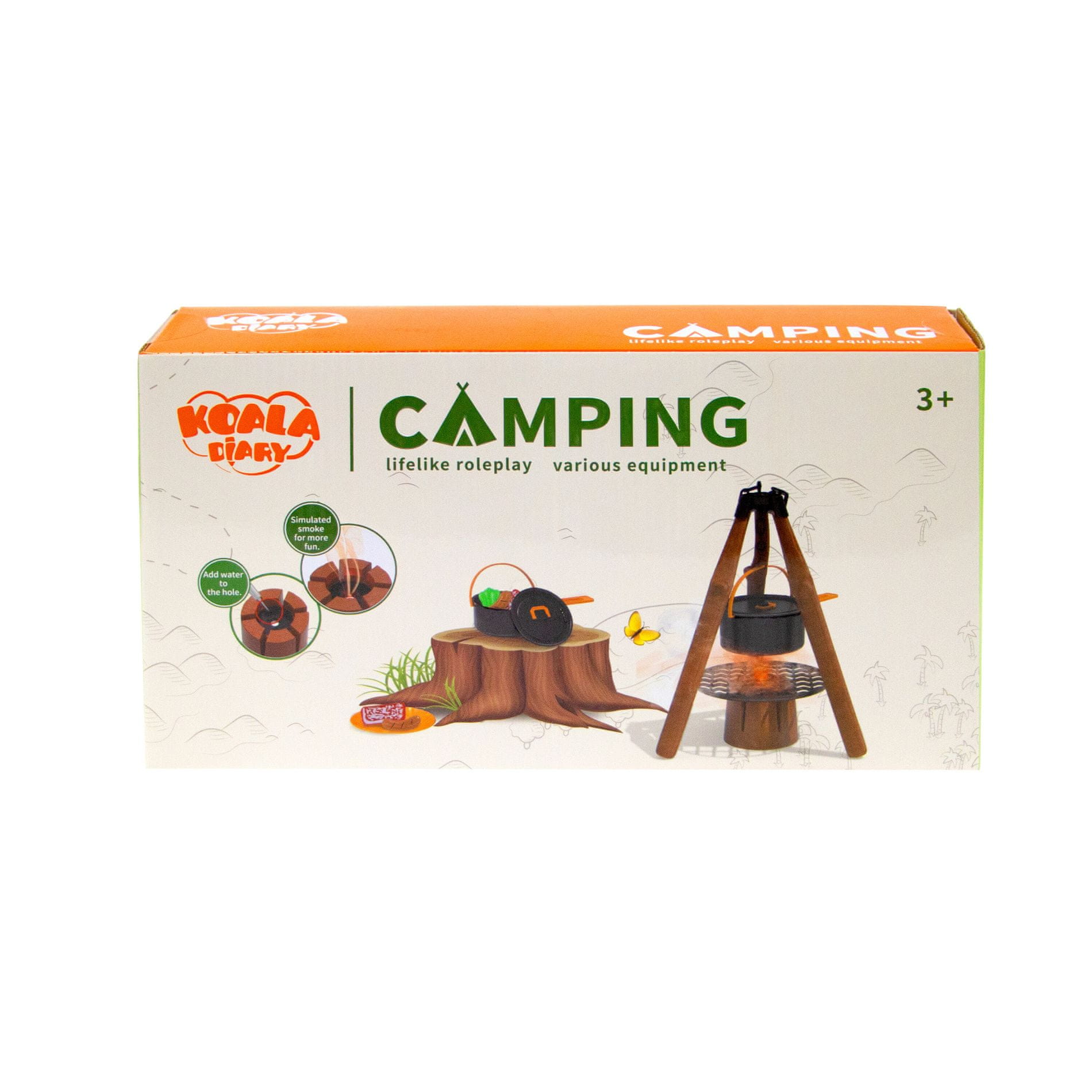 Igraći set je toliko realističan da vaše dijete može odmah krenuti na avanturistički izlet u prirodu sa svom opremom. Set se sastoji od stvarno funkcionalnih predmeta – podizni tronožac iznad ognjišta, viseći kotlić s poklopcem u kojem se može kuhati.