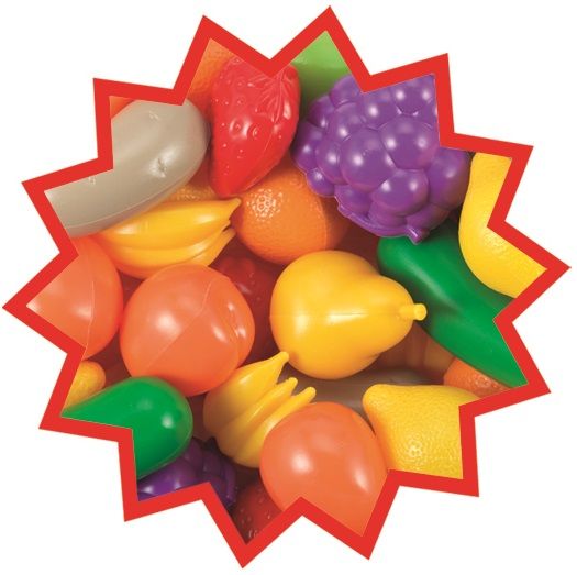 Model hrane pun vitamina zahvaljujući raznim vrstama voća i povrća Komplet uključuje mrkvu, jagode, paprike, gljive, grožđe, banane i drugu hranu bez koje nijedna kuhinja ili trgovina ne mogu. Cijeli opis