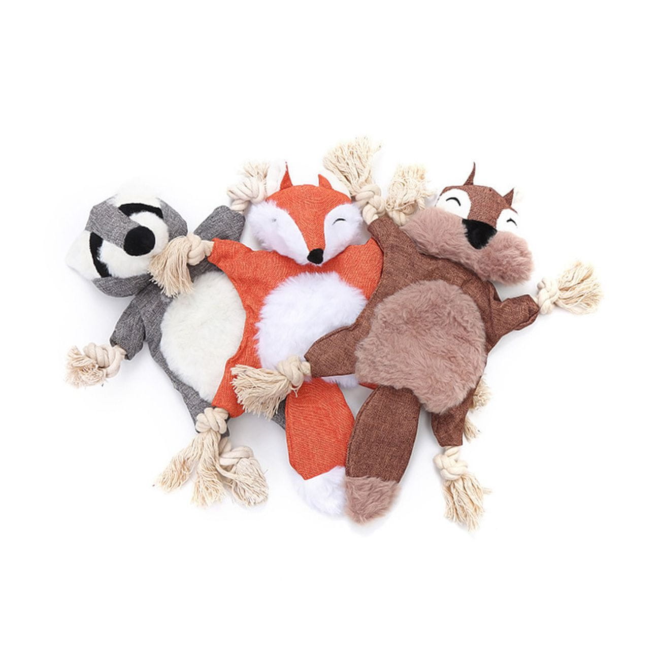 Ove simpatične krpene igračke u obliku umiljate vjeverice, lisice ili rakuna izvrsno će poslužiti vašem ljubimcu za igru.