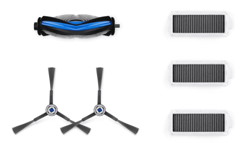 Ecovacov set pribora uključuje: 1× glavnu četku protiv zapetljavanja, 4× bočne četke i 3× antibakterijski filter. Preporučuje se zamjena pribora svakih 6 mjeseci.