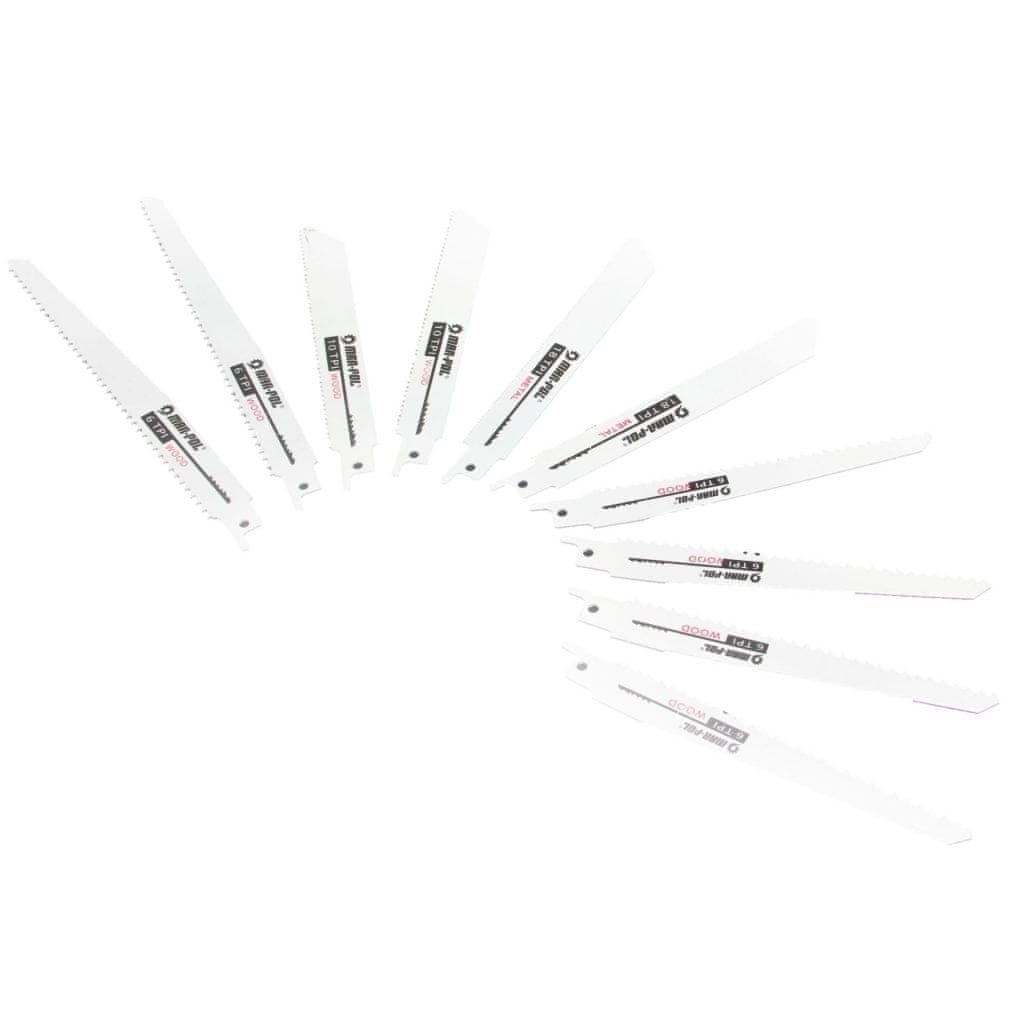 Komplet bimetalnih listova pile visoke klase za sabljaste pile. Set uključuje četiri vrste listova pile, ukupno 10 komada.
