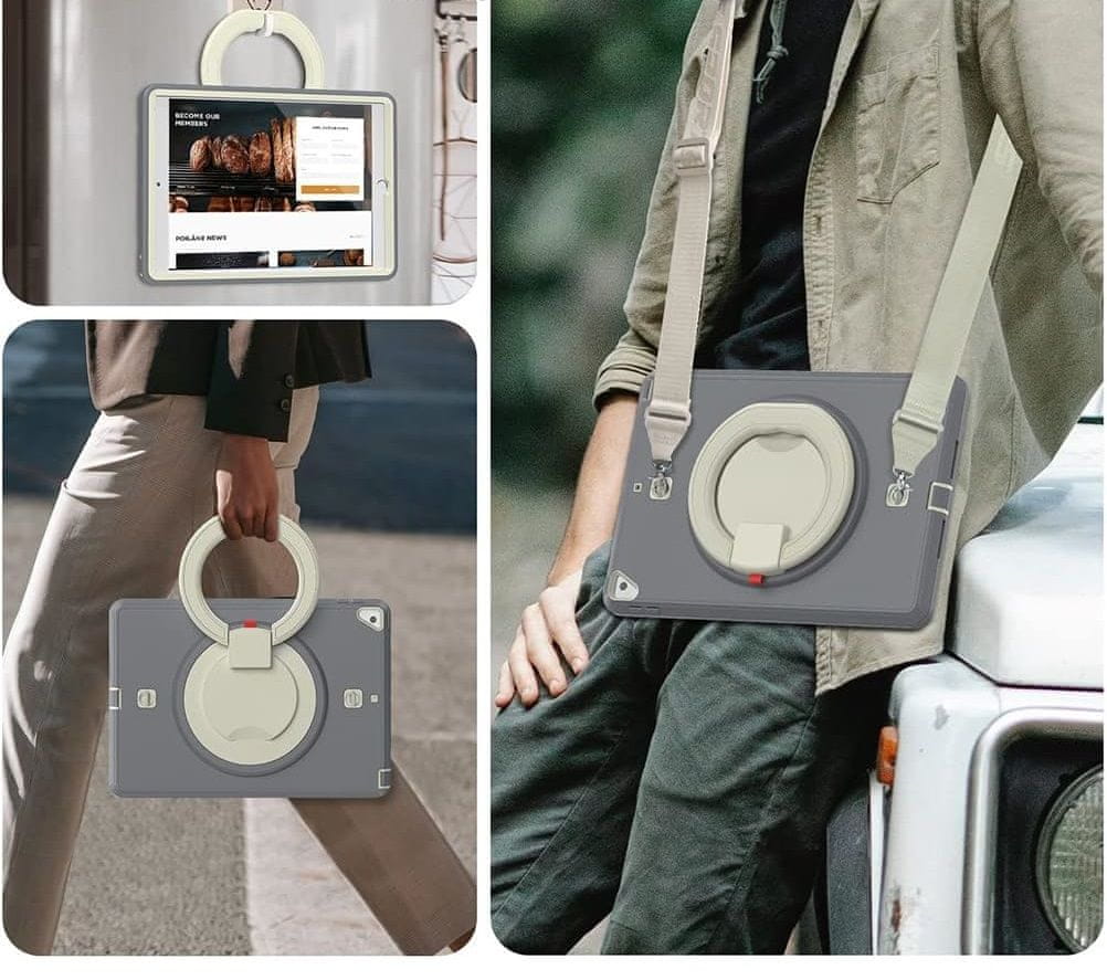 Ova futrola je dizajnirana da pruži vašem uređaju visoku razinu zaštite. Sastoji se od tri sloja: plastičnog kućišta od PC materijala i meke silikonske stražnje strane, što štiti tablet od ogrebotina, udaraca i vibracija tijekom svakodnevne upotrebe. Ova praktična futrola ima ugrađeni, sklopivi stalak koji se okreće za 360°, nudeći više kutova gledanja, što čini korištenje još udobnijim. Precizno izrađeni izrezi osiguravaju savršeno pristajanje priključcima i jednostavan pristup svim tipkama. Futrola je također opremljena podesivim i odvojivim remenom za rame, osiguravajući maksimalnu prenosivost, bez obzira gdje se nalazite. Zahvaljujući ovom svestranom kućištu, vaš će uređaj biti siguran tijekom planinarenja, izleta i drugih aktivnosti na otvorenom.