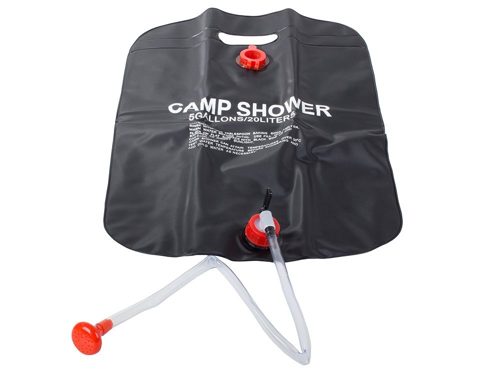 Prijenosni tuš za korištenje gdje god nema tekuće vode, na primjer na izletu, kampu, kampiranju, parceli. Prekriven crnim premazom kako bi se voda brzo zagrijala. Opremljen crijevom s vrhom za tuširanje i crijevom za ojačanje na koje se može objesiti tuš.