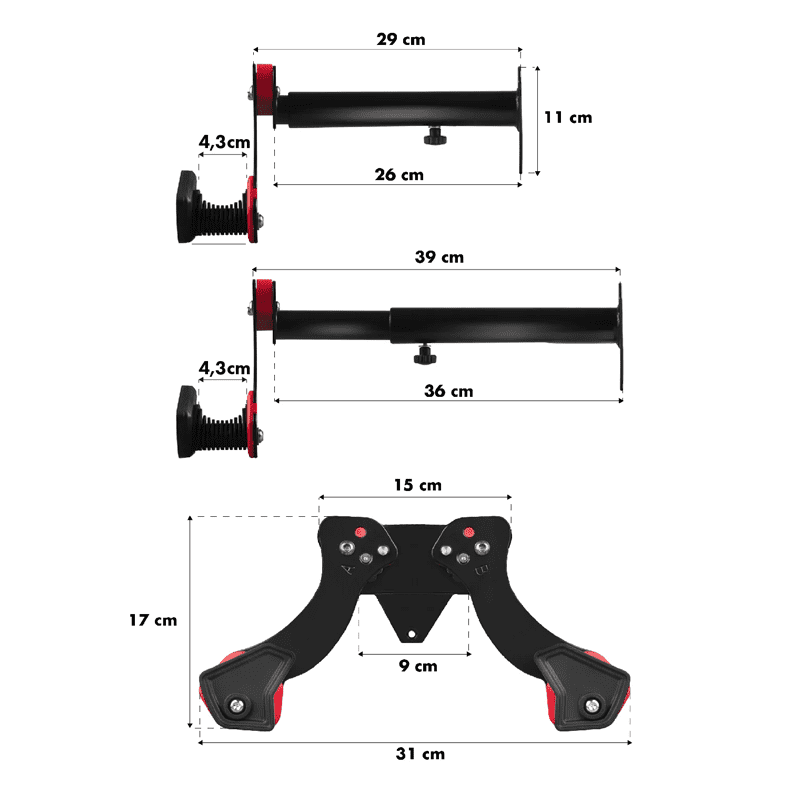 Nosač za bicikl MC-449 je praktično i zgodno rješenje za vješanje bicikla na zid. S robusnom čeličnom konstrukcijom i maksimalnom nosivošću od 30 kg, osigurava sigurno i stabilno skladištenje bicikala. Mogućnost podešavanja udaljenosti od zida omogućuje vam prilagođavanje duljine nosača vašim potrebama. Osim toga, moguće je podesiti razmak između ruku, što vam omogućuje prilagođavanje nosača različitim vrstama bicikala. Montaža nosača je jednostavna i brza, a komplet uključuje svu potrebnu montažnu opremu.