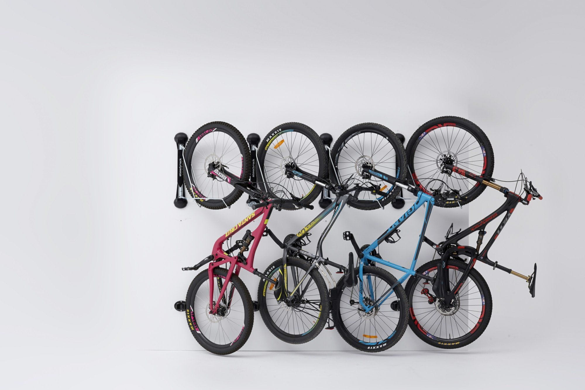 Nosači se mogu zakretati za 180 stupnjeva lijevo ili desno. U usporedbi s podnim nosačima za bicikle, Steadyrack štedi najmanje 40% prostora na podu.
