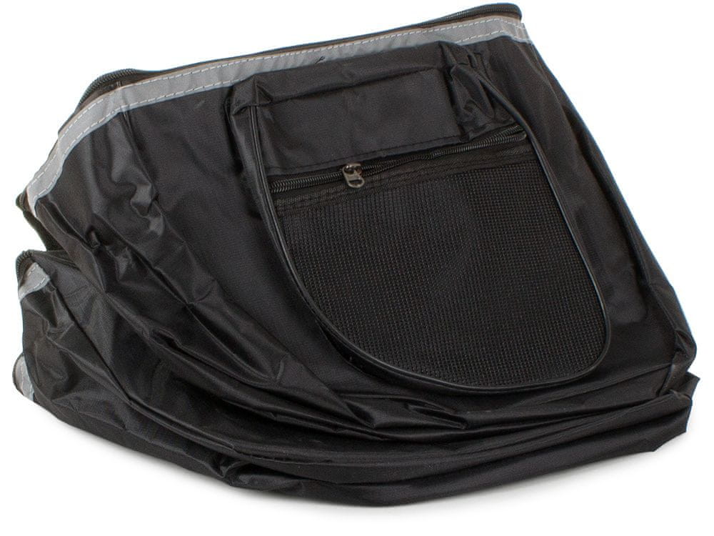 Torba ima 2 velika pretinca s manjim džepovima s patentnim zatvaračem. Obrubljen je reflektirajućom trakom za veću sigurnost tijekom putovanja. Univerzalna torba prikladna je za većinu kofera, pričvršćuje se na čičak.