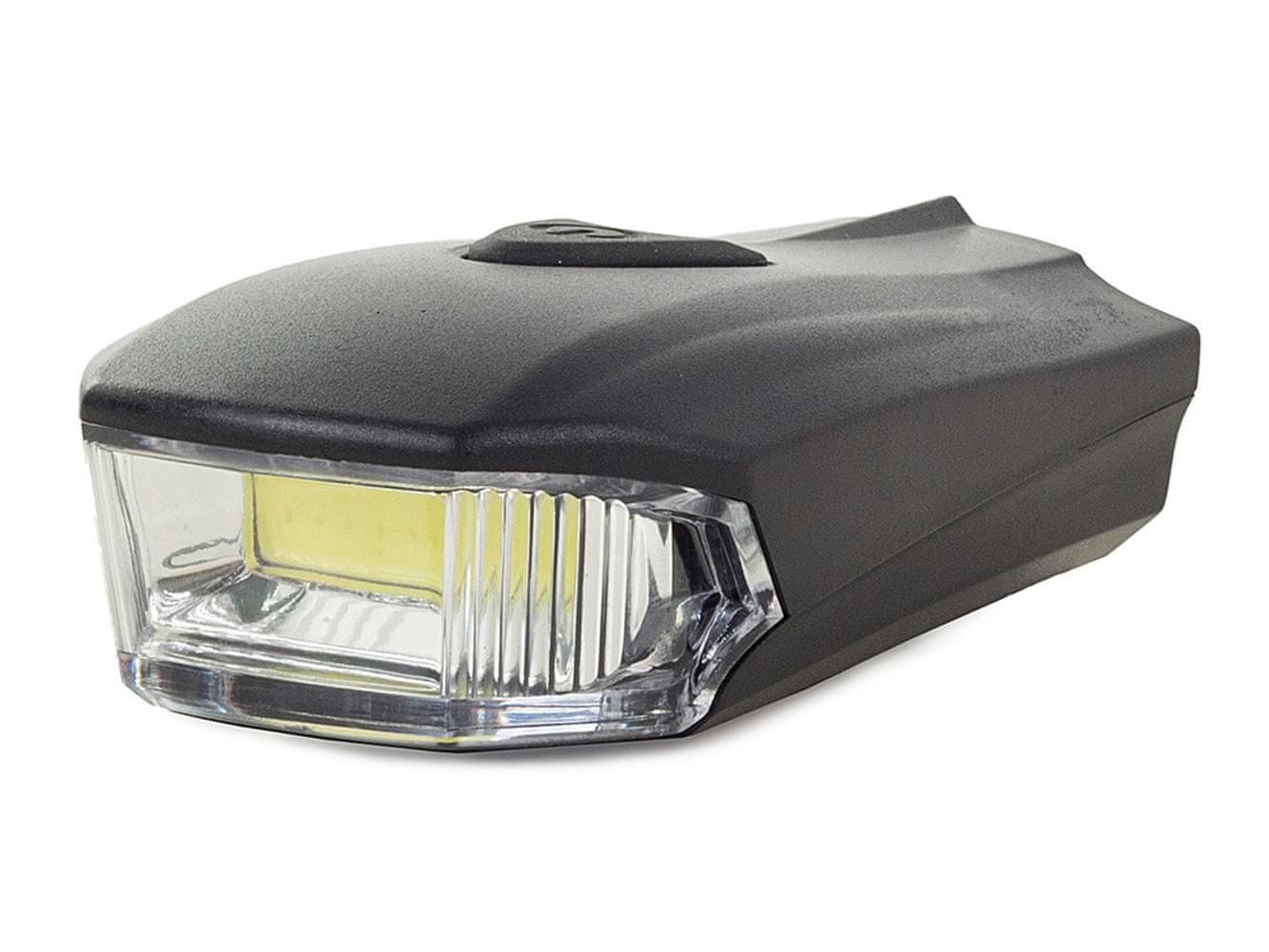 Prednja svjetiljka s COB diodama nove generacije emitira oštru, jasnu svjetlost zahvaljujući kojoj je biciklist vidljiv s velike udaljenosti, što osigurava veću sigurnost na cesti.
