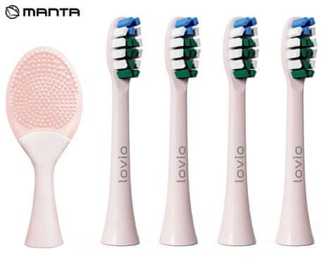 Manta Lovio SonicProtect PRO glave električne četkice za zube, 5 glava, meka tvrdoća, ružičasta (rumenkasto ružičasta)