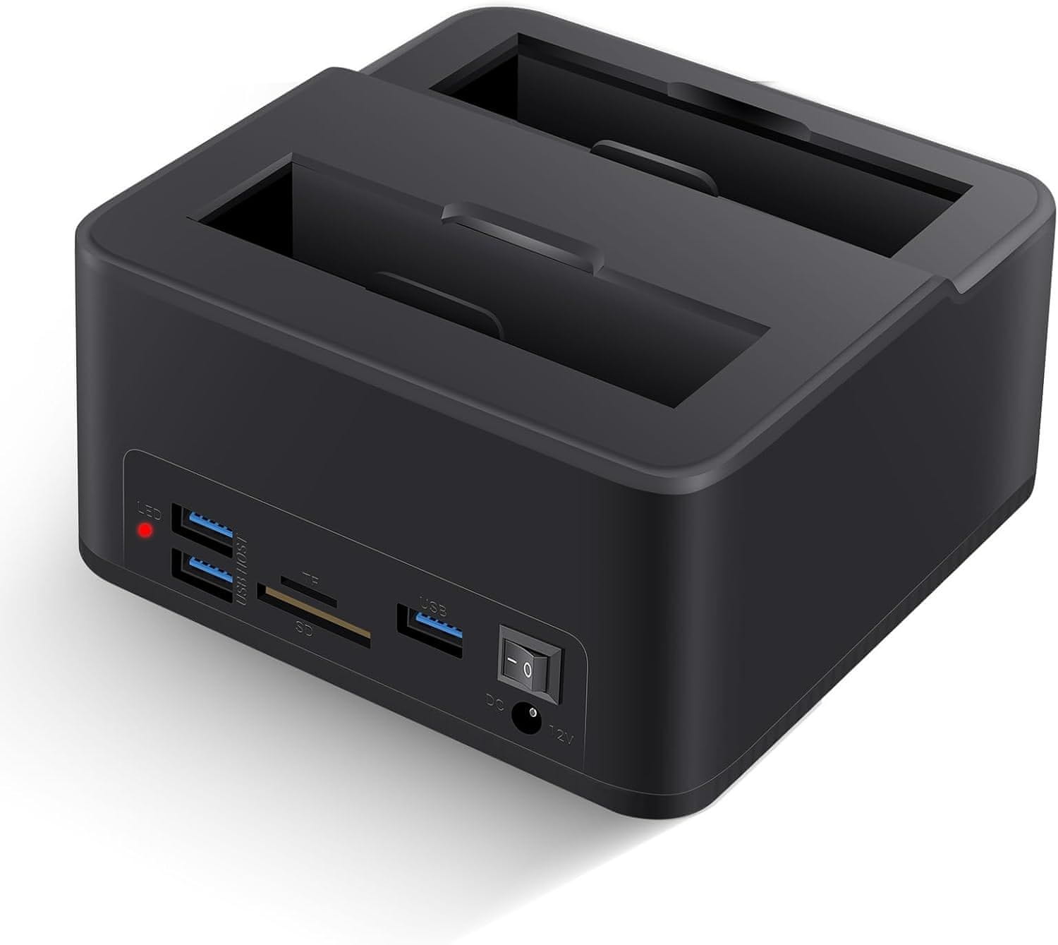 slomart Dvojni priključak za tvrdi disk USB 3.0 za 2,5"/3,5" SATA HDD/SSD (do 2x16TB) s čitačem kartica i kloniranjem - B0F4X43F6K