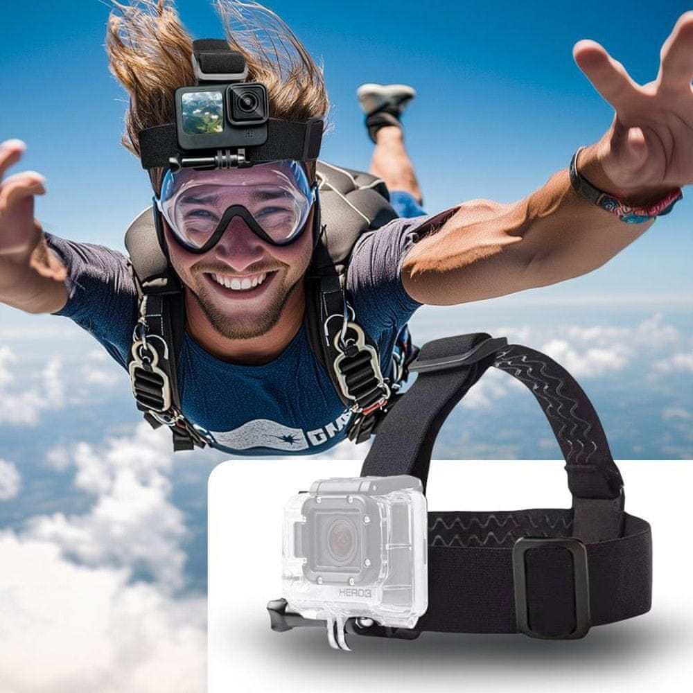 • Dizajnirano za GoPro i DJI sportske kamere• Podesiva elastična traka za glavu