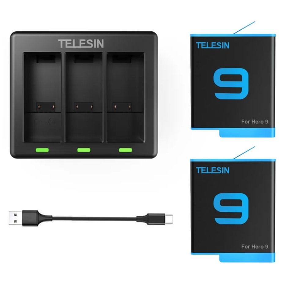 TELESIN 3-slot punjač za GoPro Hero 9 / 10 / 11 / 12 + baterije 2kom, crno