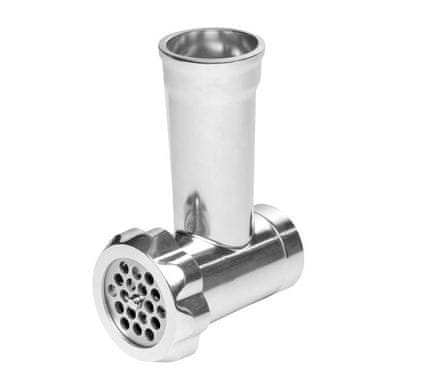 Želite li domaće hamburgere, ćevapčiće ili lazanje? Izmjenjivi nastavci za mljevenje mesa s tri različite veličine rupa omogućuju vam mljevenje mesa po potrebi. Debelo sito prikladno je za pripremu smjese za paštete, srednje sito za ćufte ili polpete. Sito s najvećim rupama može se koristiti, na primjer, za pripremu smjese za kobasice.