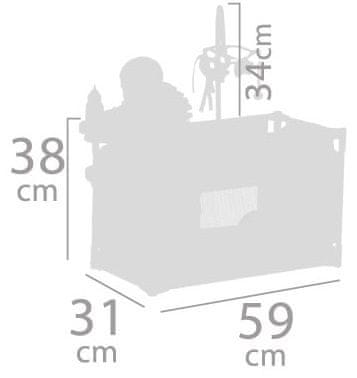 - Dimenzija ležaja: 59 × 31 × 38 cm (d x š x v).