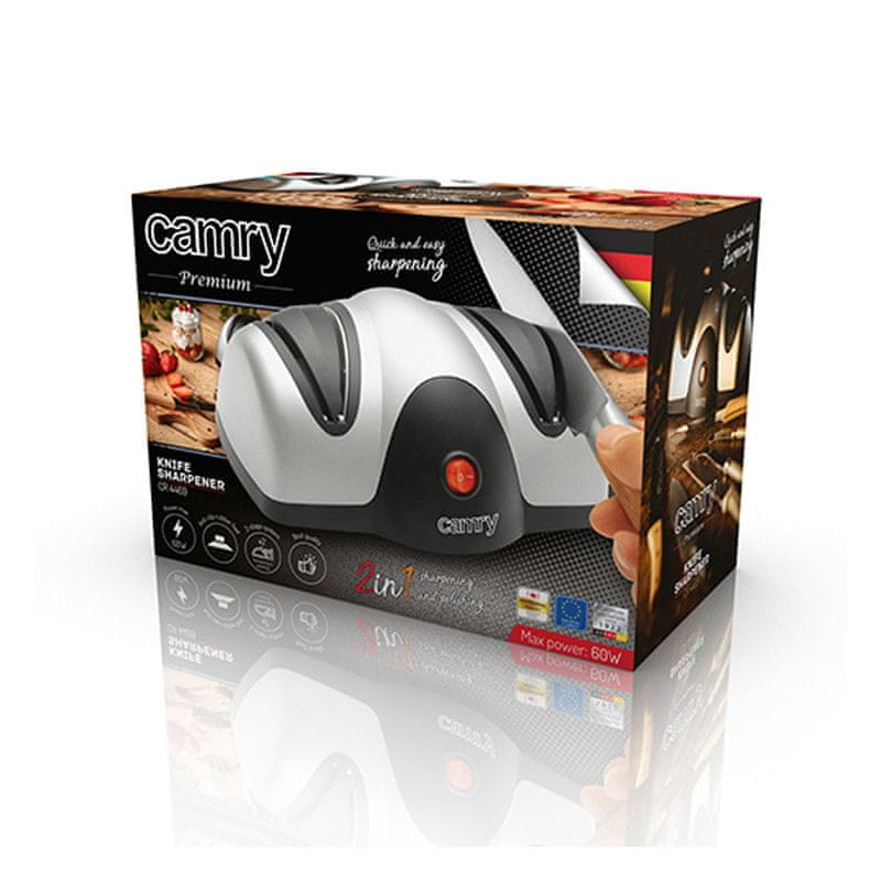 Praktično oštrilo za oštrenje i poliranje noževa. Zahvaljujući ovoj kombinaciji više ne morate kupovati dva mlina, dovoljan je jedan s 2 funkcije. Učinak? Ekstra oštri noževi koji pojednostavljuju rad u kuhinji.- Nož oštar kao britva u samo nekoliko sekundi