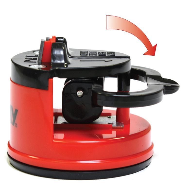 Korištenje uređaja je jednostavno, prvo je postavite na glatku i očišćenu površinu. Zatim gurnite ručicu prema dolje kako biste stvorili vakuum. Snažan vakuum daje oštraču izuzetnu stabilnost i omogućuje sigurno oštrenje noževa jednom rukom.