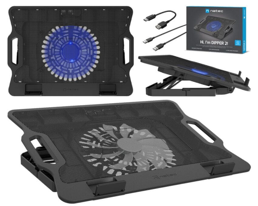 Natec Dipper 2 stalak za hlađenje laptopa, do 17.3, 6 nagiba, ventilator 180 mm, LED, 2xUSB-A