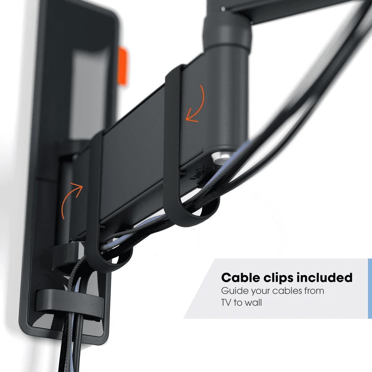 Uz COMFORT Full-Motion+ zidni nosač možete uživati u TV-u iz svih kutova. Unesite model svog televizora na ovu stranicu i naš alat izračunat će stvarni kut zakretanja vašeg TV-a! Zahvaljujući One-Finger™ Movement tehnologiji, zaslon možete okrenuti u idealan položaj samo jednim prstom. Posebni ležajevi osiguravaju izuzetno glatko i lako okretanje nosača.