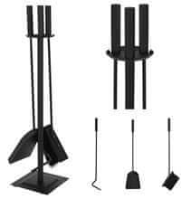 Cijeli set alata za kamin smješten je na stalku koji je dio seta. Opremljen je posebnim držačima za vješanje svih posuđa. Na dnu su dodatno korištene 4 protuklizne nožice koje sprječavaju klizanje proizvoda. Klasični crni set izgleda elegantno u odnosu na bilo koju vrstu interijera.